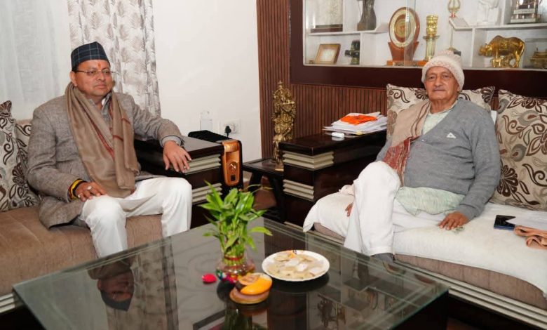 मुख्यमंत्री पुष्कर सिंह धामी ने पद्म भूषण सम्मान हेतु चयनित होने पर भगत सिंह कोश्यारी को उनके आवास पर पहुंच कर दी बधाई